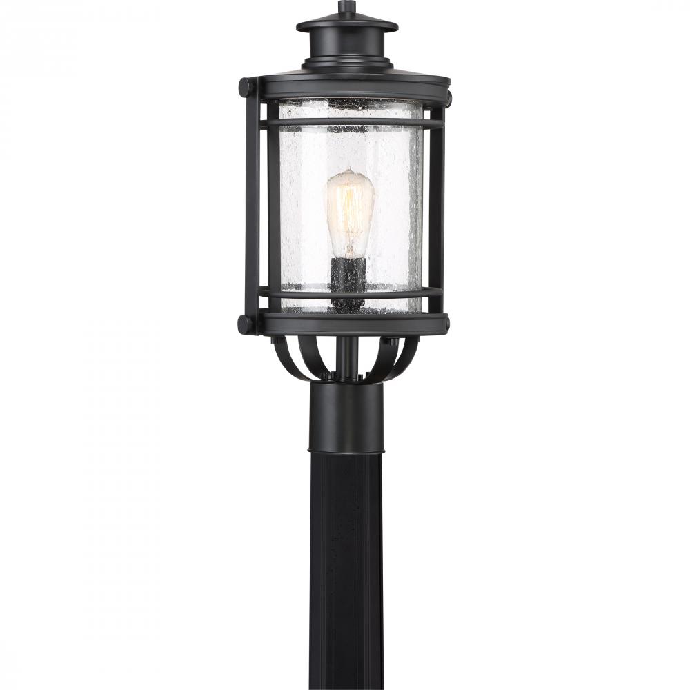 The Booker Outdoor Collection is a fresh and charming style. The design features a curved arm on the backplate “holding” the lantern and the finish is an inky Mystic Black. All of the details from the knobs, round trim and light seedy glass come toge