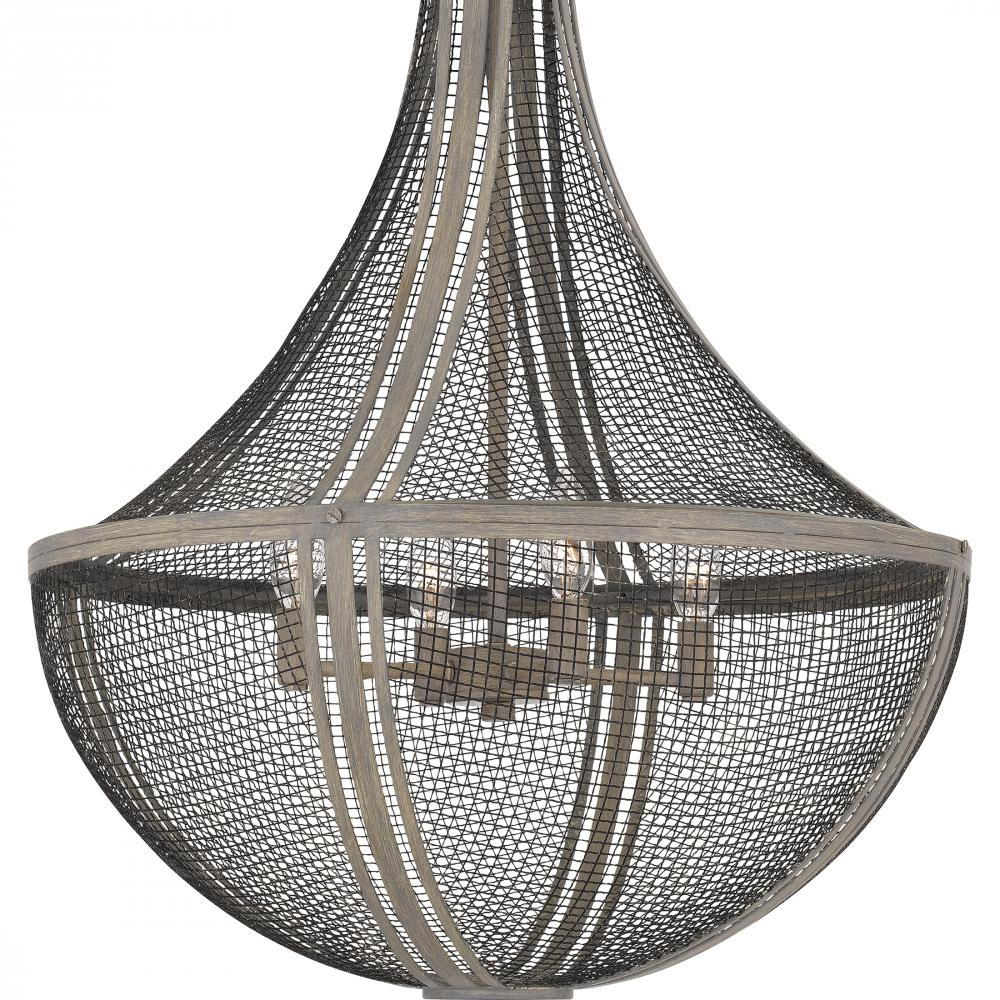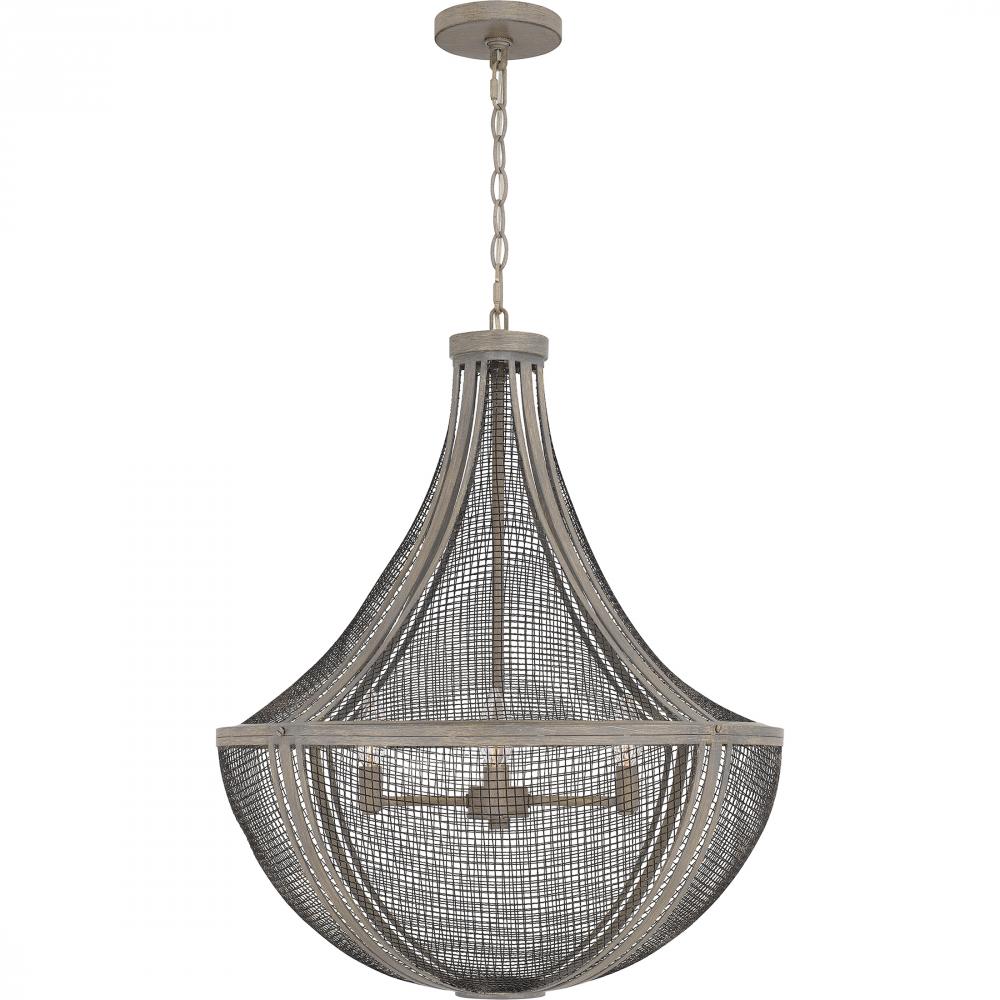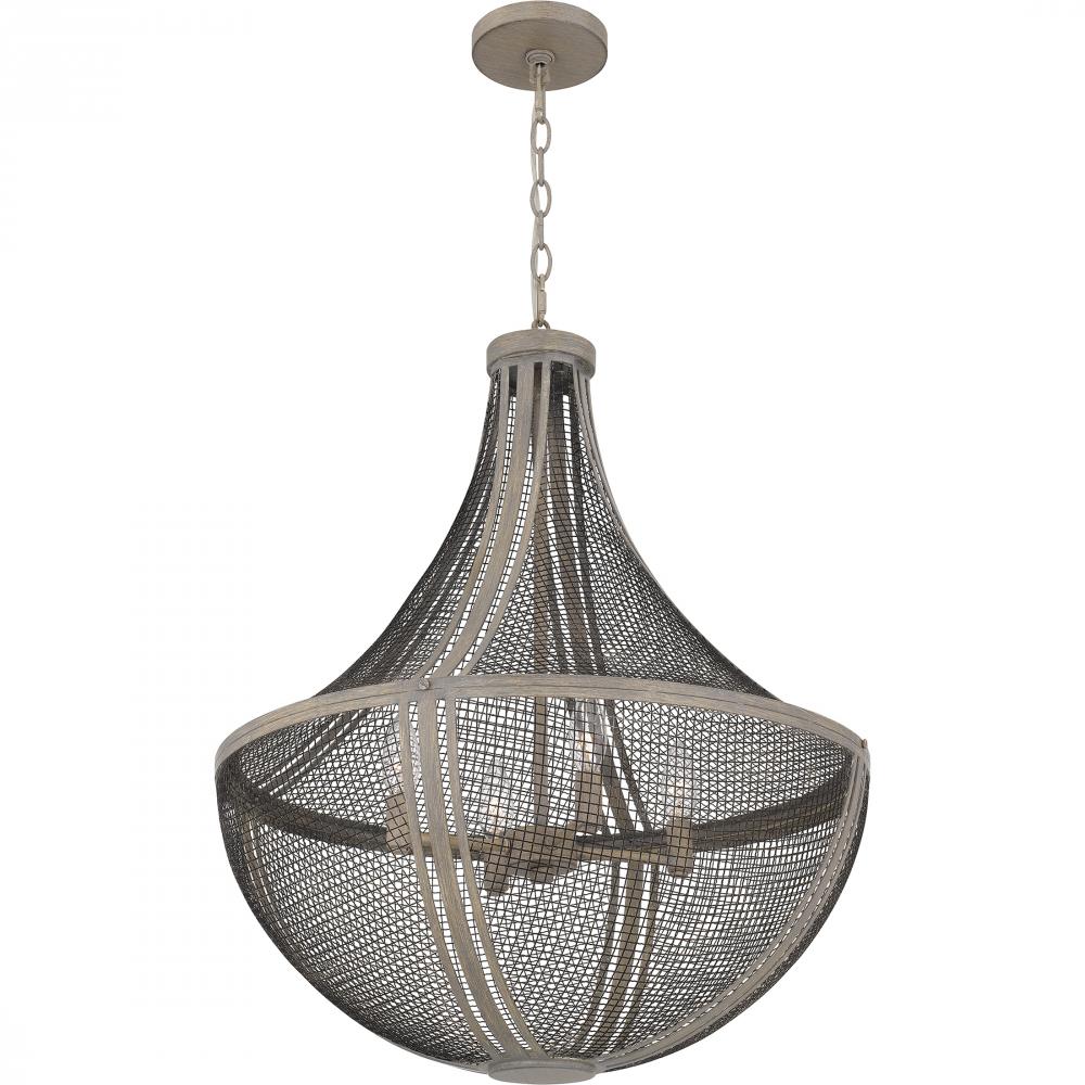 With a metal mesh shade and distressed grey wood finish, Hallie is the essence of global design. The grey wood frame has a slightly distressed finsh, adding a modern farmhouse feel. Available in a semi-flush mount or pendant light, Hallie makes a cool stat
