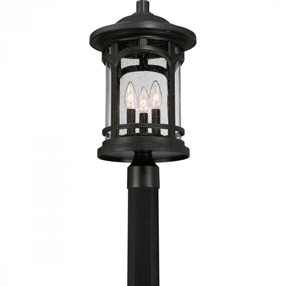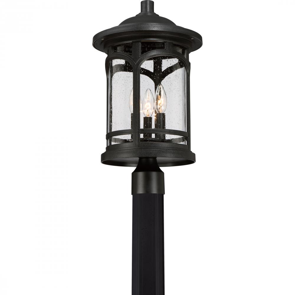 Marblehead is a rich masculine outdoor series and a welcome addition to the Quoizel Coastal Armour Collection. The stately form of the metal arches gives the clear seedy glass a window like appearance. Made from a new weather resistant outdoor composite