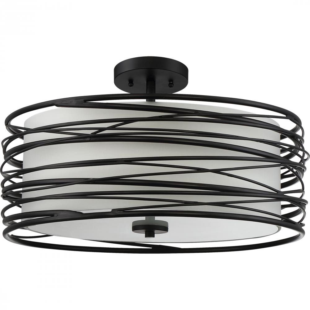 With a sense of whimsical, multi-layered style, the Spiral series features a unique and fun design. The coiling of the outer metal shade matches the finish on the body of the fixture for a cohesive look. The inner fabric shade is a creamy beige and include