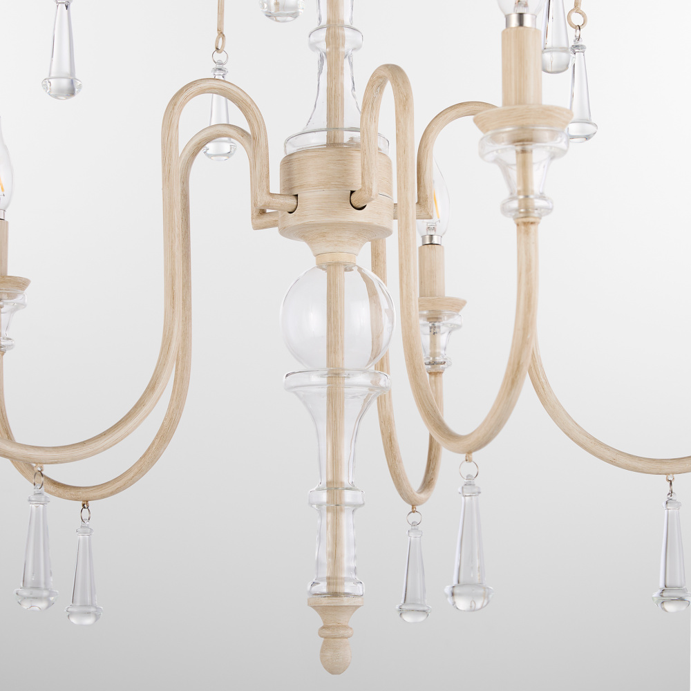 Clasica brings European-inspired elegance to any space with its romantic and traditional design. The washed oak finish works seamlessly with the shaped glass detail. Its soft, weathered tones complement the smooth, sculpted form, creating a delicate and distinguished look. Bold glass crystals hang from the arms, adding a touch of luxurious brilliance that enhances the fixture’s elegant silhouette. Available in multiple light configurations to suit a variety of settings.