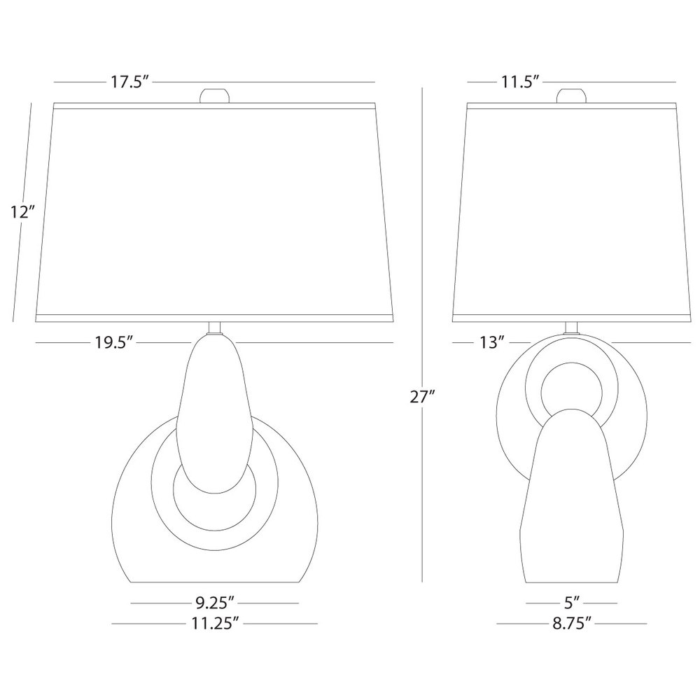 Bone Glazed Ceramic with Polished Nickel Accents Fusion Table Lamp with Oval Oyster Linen Shade - A contemporary collection, Fusion draws the eye with elegant curves, flowing movement and a design comprised of joined rings.