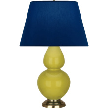 Citron Glazed Ceramic with Antique Brass Finished Accents Double Gourd Table Lamp with Pearl Dupioni Fabric Shade - Our Double Gourd collection features a simple but gracefully curving silhouette. Available in a wide array of vibrant colors and several different base finishes.