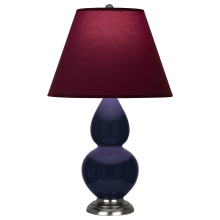 Midnight Blue Glazed Ceramic with Antique Silver Finished Accents Small Double Gourd Accent Lamp with Pearl Dupioni Fabric Shade - Our Double Gourd collection features a simple but gracefully curving silhouette. Available in a wide array of vibrant colors and several different base finishes.
