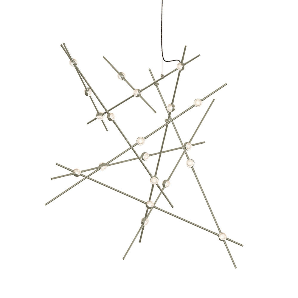 The eagle that carried Zeus's thunderbolts embodies the mythological reference to this stunning sculptural configuration. Constellation Aquila is available in two sizes, and can be suspended as individual sculptures or clustered with others to form a spectacular arrangement of magical Constellations.