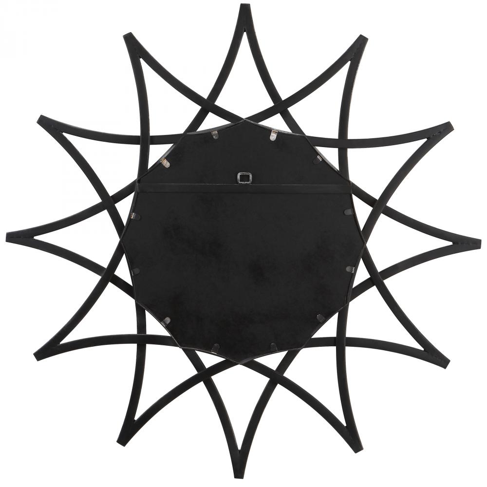 Handcrafted from forged iron, this mirror showcases a star-shaped frame finished in an aged crackled charcoal with a light gray glaze and antiqued silver rivet like accents.