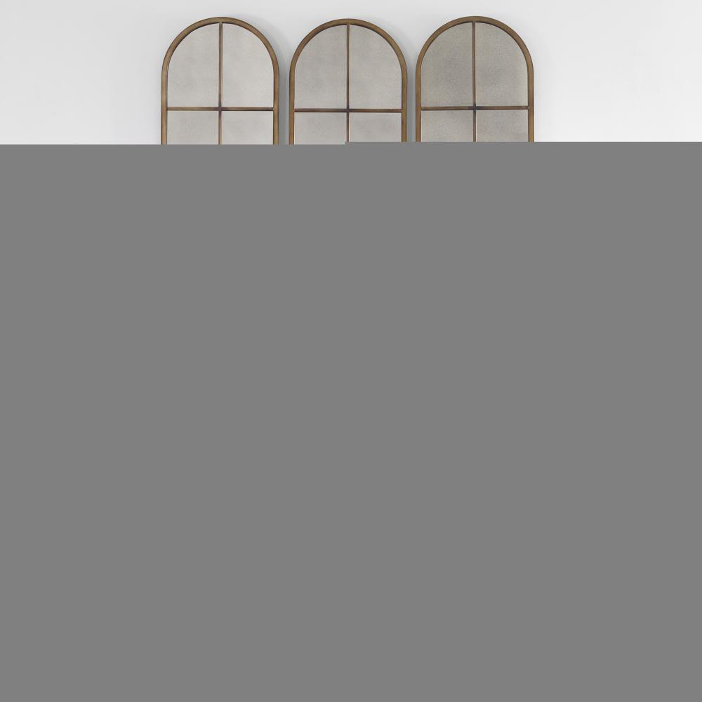 This Arch Features A Forged Iron Frame in A Hand Applied Warm Bronze Finish with Burnished Distressing Encasing An Antique Style Mirror. Sold Individually. Shown Are Three Pieces of #13463.
