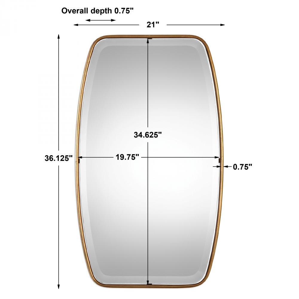 This Shaped Mirror Frame is Forged From Rounded Metal Finished in A Heavily Antiqued Gold Leaf Featuring A Floating Beveled Mirror. May Be Hung Horizontal or Vertical.