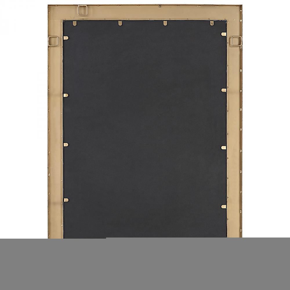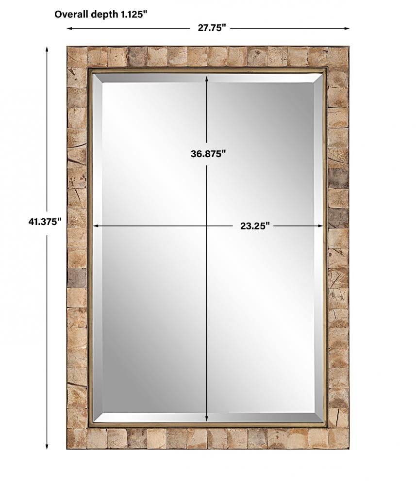 This Rectangular Mirror Showcases An Iron Strap Frame Finished in Dark Gold, Accented By Concaved, Polished Coconut Shells Inlays. Each Shell May Vary Slightly in Color, Adding to Its Authenticity and Character. The Mirror Features A Generous 1 1/4" Bevel and May Be Hung Horizontal or Vertical.