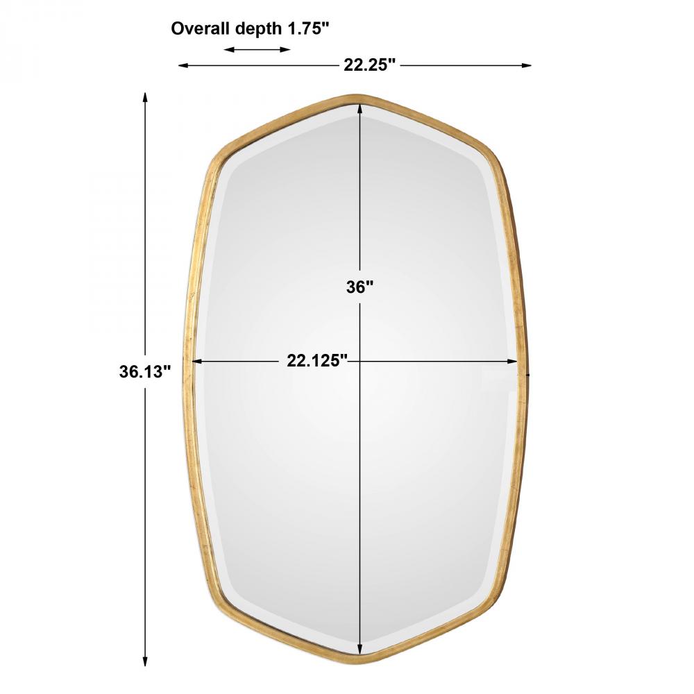 This Hand Forged Metal Mirror Frame Features A Unique Shape with Delicate Curves, Finished in A Lightly Antiqued Gold Leaf. Mirror Has A Generous 1 1/4" Bevel.