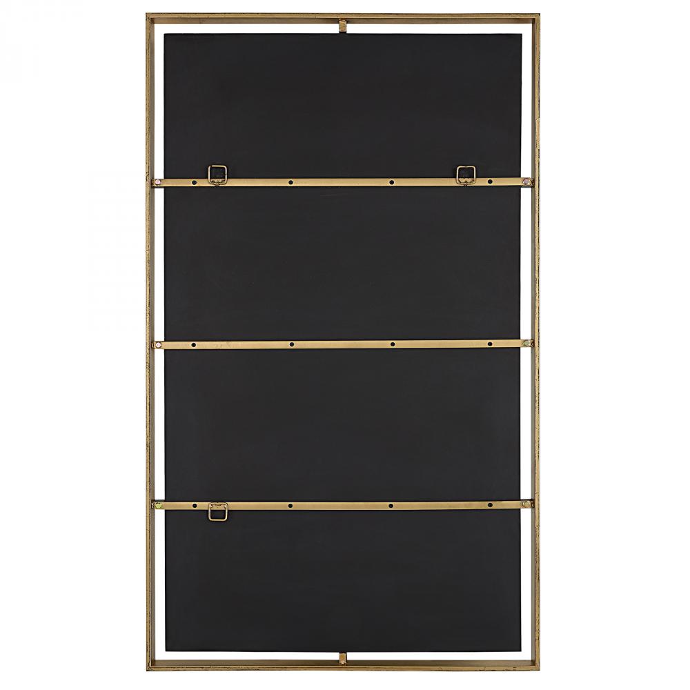 This Mirror Displays A 3-dimensional Design with An Outer Iron Frame Finished in Warm Gold, Surrounding A Floating Mirror Held By Aged Bronze Clips. May Be Hung Horizontal or Vertical.