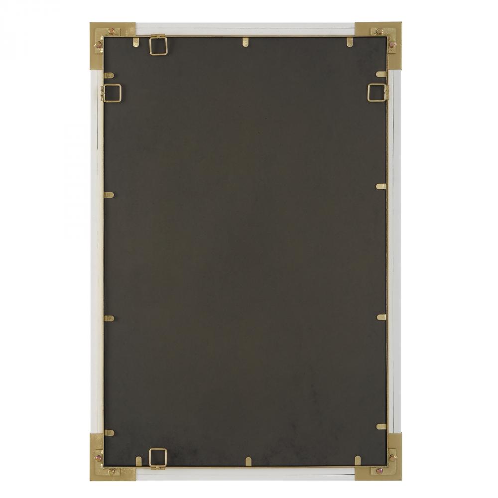 Showcasing An Elevated Traditional Look, This Mirror Features A White Faux Shagreen Wrapped Frame with Coordinating Gold Leaf Corner Caps and An Iron Inner Liner. Mirror Has A Generous 1 1/4" Bevel. May Be Hung Horizontal or Vertical.