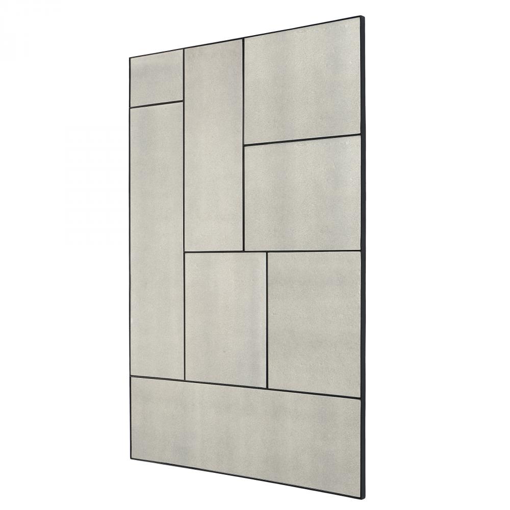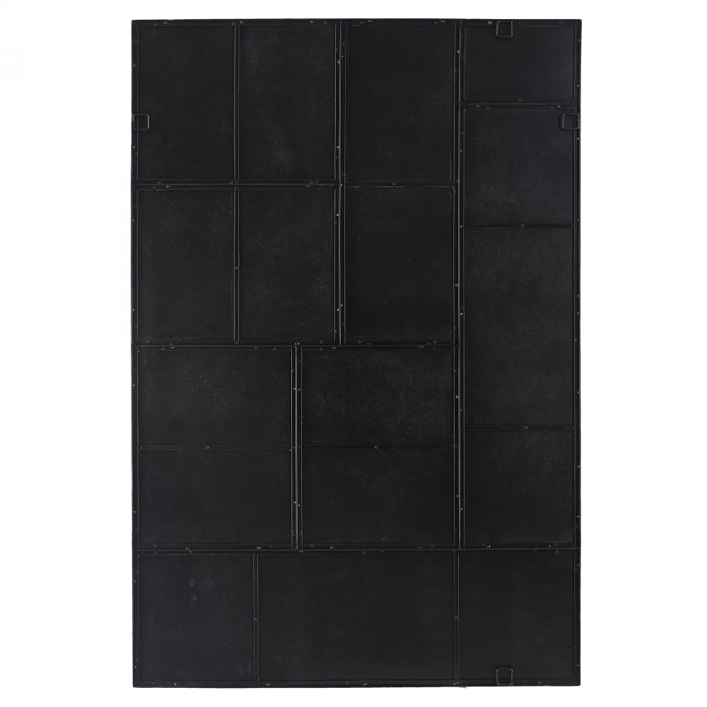 This Oversized Piece Showcases A Geometric, Multi-panel Design Featuring Antique Style Mirrors Accented By A Slim Black Iron Frame. May Be Hung Horizontal or Vertical.