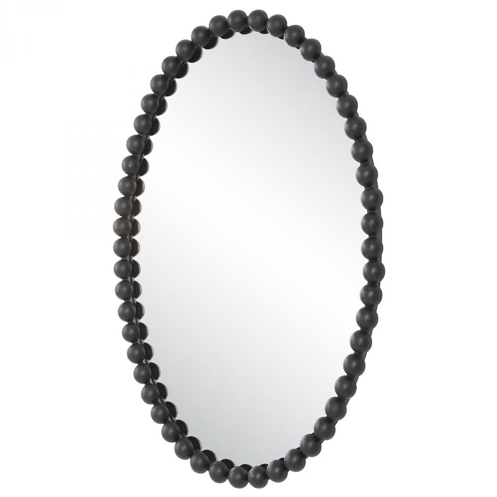The Serna Oval Features An Elegant Curved Iron Frame with A Beaded Profile Finished in A Stylish Matte Black. May Be Hung Horizontal or Vertical.