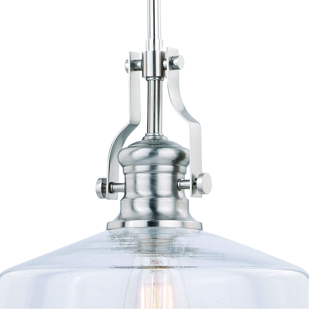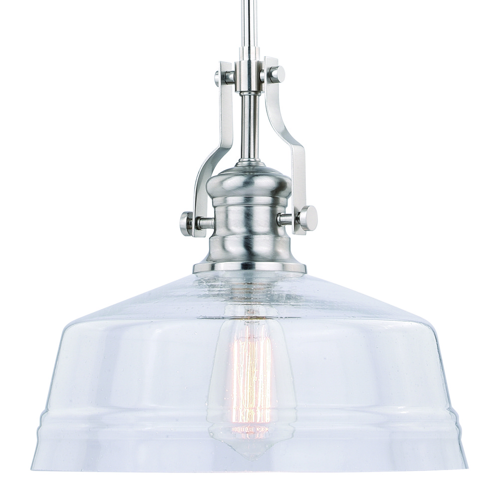 The Beloit collection a welcoming and inviting feel to your kitchen or living spaces. Soft curving lines finished in satin nickel, are paired with large clear seeded glass shades, creating a look that accents the most comfortable spaces. Combine that with a vintage Edison style filament bulb to complete the look. Bring a level of sophistication to your trendy farmhouse or urban style.
