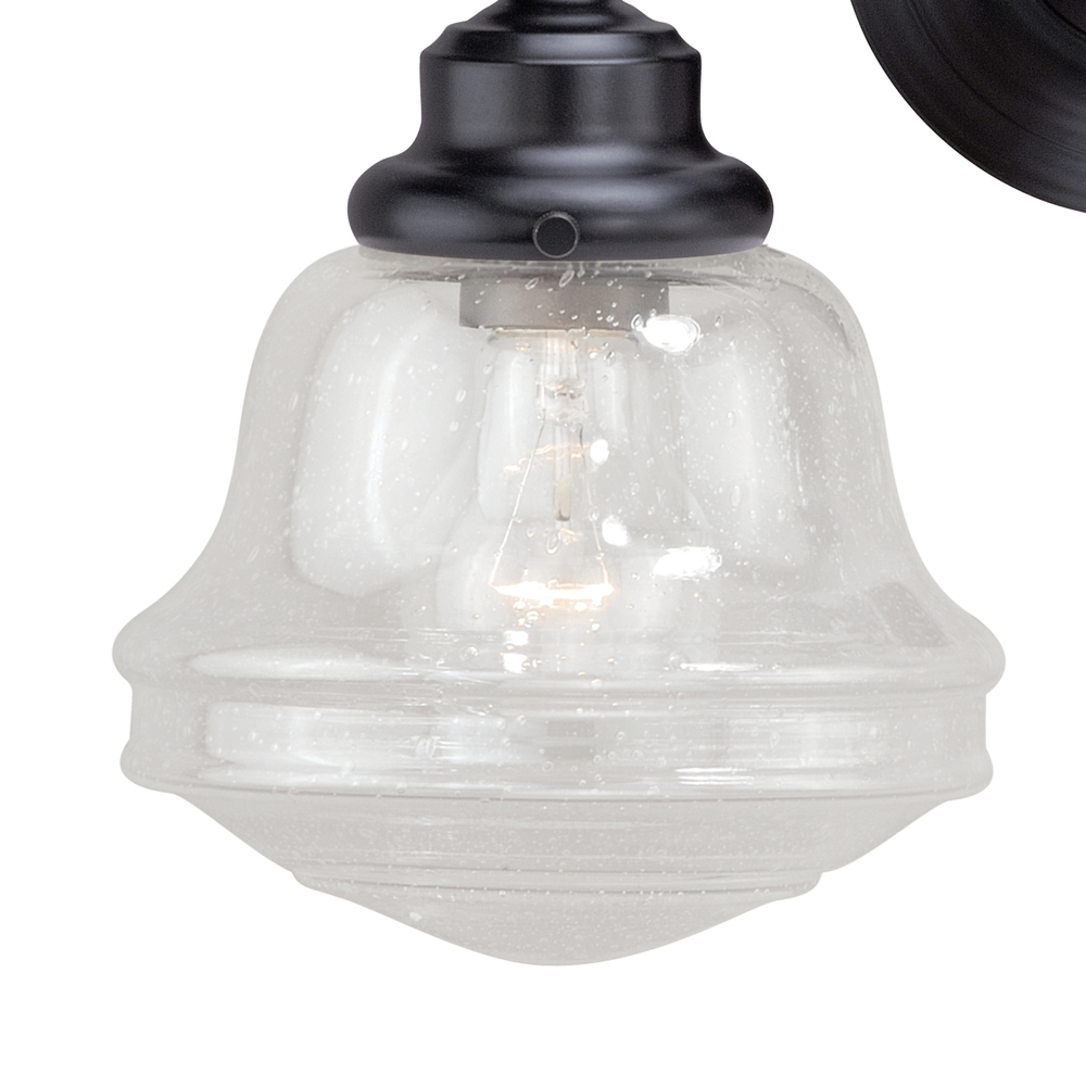 The Huntley is a timeless collection inspired by mid-century small-town aesthetics. The vintage school house glass is the focal point of this design : with its unique profile and glass options. Offered in two finishes, this versatile wall light will provide a unique accent to a variety of kitchen, dining, and bathroom settings. Medium screw base lamping provides maximum light output. Mountable in up light or down light configuration. The complete collection includes Medium Size Pendants, Semi-Flush, and 1, 2 3, and 4 Light vanities.