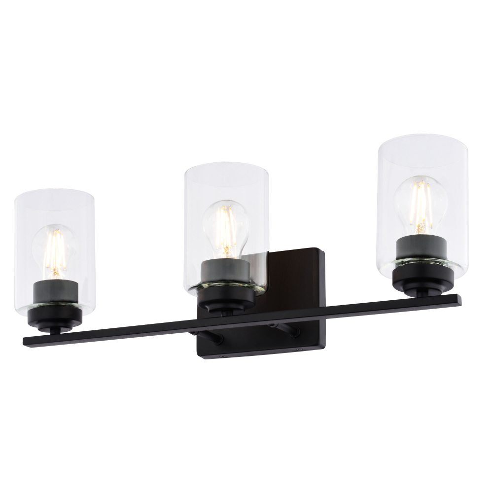 Bring a touch of minimalist sophistication to your bathroom with the Park Ridge 3-light vanity wall fixture. Its matte black finish and clear cylindrical glass shade create a striking focal point, casting a crisp, radiant glow perfect for any bathroom setting. Whether your style is contemporary, transitional, or even modern farmhouse, its clean lines and timeless design will complement your decor. The streamlined, straight bar design offers a contemporary edge, seamlessly blending transitional and modern aesthetics, while ensuring a quick and effortless upgrade to your space. Experience the perfect balance of style and function, transforming your bathroom into a personal sanctuary.
