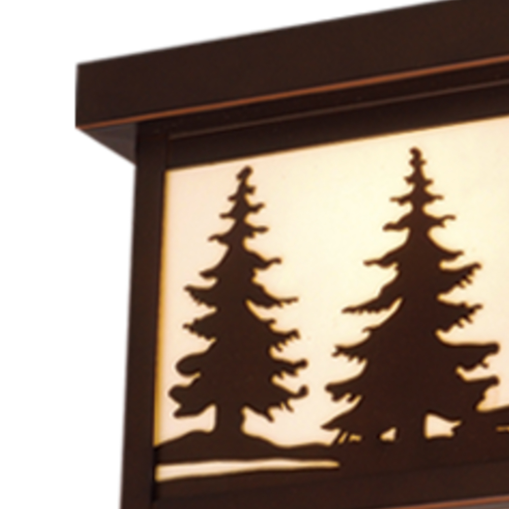 Evoking the spirit of the wilderness, this rustic themed light is clad in a burnished bronze finish and features silhouetted tree imagery atop glowing white tiffany style glass. It is a great choice for a vacation lodge, cabin or suburban home and will complement a variety of home styles: anywhere you want to bring an element of nature. This outdoor ceiling light is ideal for your porch, entryway, or any other area of your home.