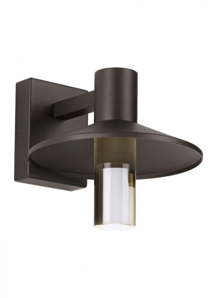 The Ash outdoor wall piece by Sean Lavin for Visual Comfort Modern is a modern take on the classic industrial-style light fixture. The Ash features a sleek metal shade and clear diffuser that’s ideal for creating a streamline column of light from under the shade. For added convenience in light output, the diffuser is removable to limit uplight for Dark Sky compliance. Available in modern finishes. Integrated energy efficient lamping makes for a long-lasting trusted source of light.