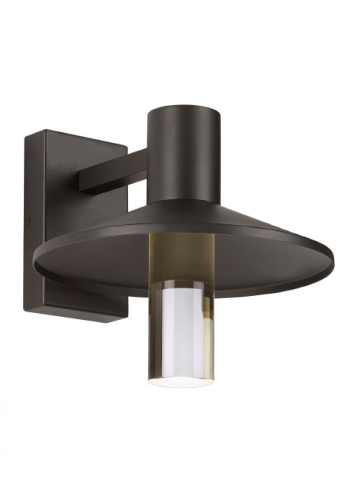 The Ash outdoor wall piece by Sean Lavin for Visual Comfort Modern is a modern take on the classic industrial-style light fixture. The Ash features a sleek metal shade and clear diffuser that’s ideal for creating a streamline column of light from under the shade. For added convenience in light output, the diffuser is removable to limit uplight for Dark Sky compliance. Available in modern finishes. Integrated energy efficient lamping makes for a long-lasting trusted source of light.
