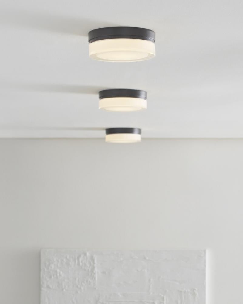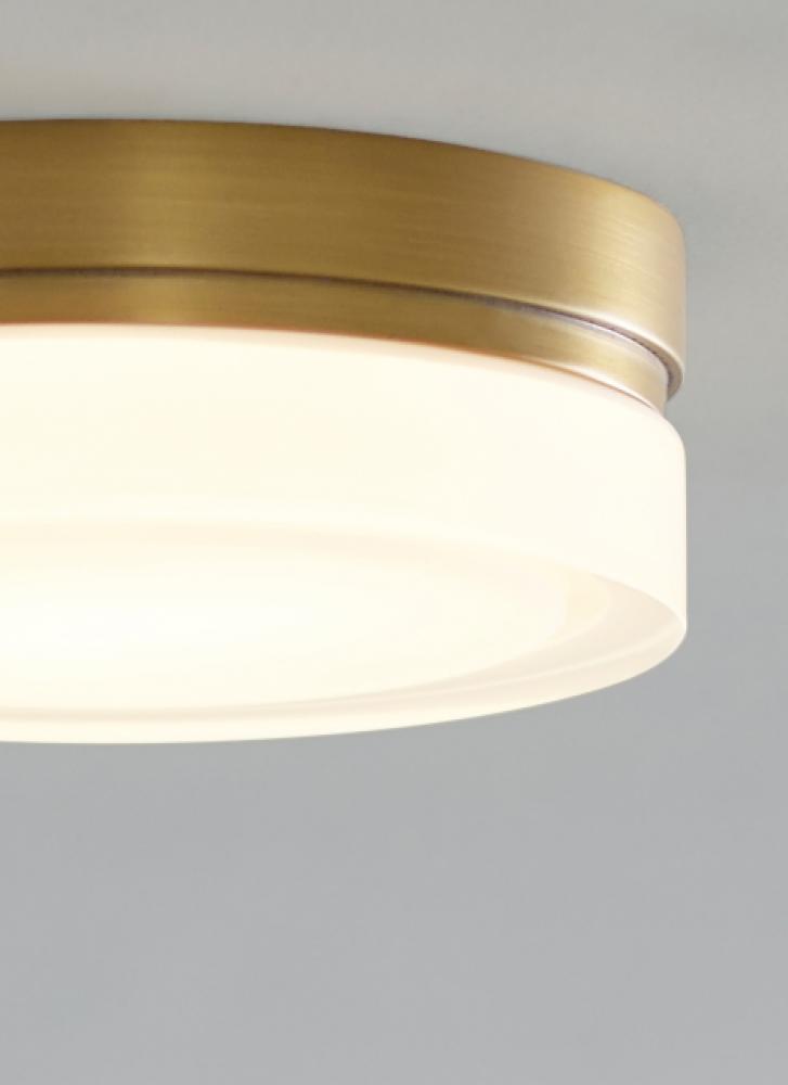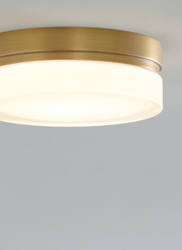 The Cirque ceiling fixture by Sean Lavin features a simple and clean design with its beautiful round pressed glass shade is and hand polished exterior. A metal base made of die-cast metal frames the glass giving this feature a very handsome look. Available in modern finishes. Your choice of LED lamping ships with Cirque saving you time and money. Lamping options are compatible with most dimmers. Refer to Dimming Chart for more information.