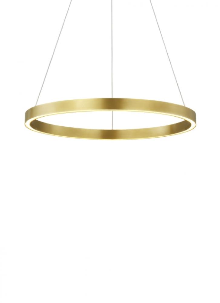 The Fiama chandelier by Sean Lavin is a transitional style chandelier but with an entirely modern twist. At its most unadulterated form the Fiama is a slender metal ring that houses gently diffused upward and downward firing LEDs, providing functional light with an ultra-chic aesthetic and are accented with metal spacers for a touch of contrast. This modern work is ideal for a wide range of lighting applications such as dining room lighting, foyer lighting and a host of commercial lighting applications. The Fiama pendant light ships with a fully dimmable integrated LED lamp.